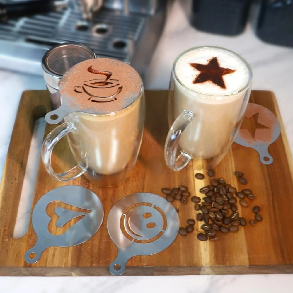 - Easy to use, simply hover the stencil over your coffee and dust cocoa powder