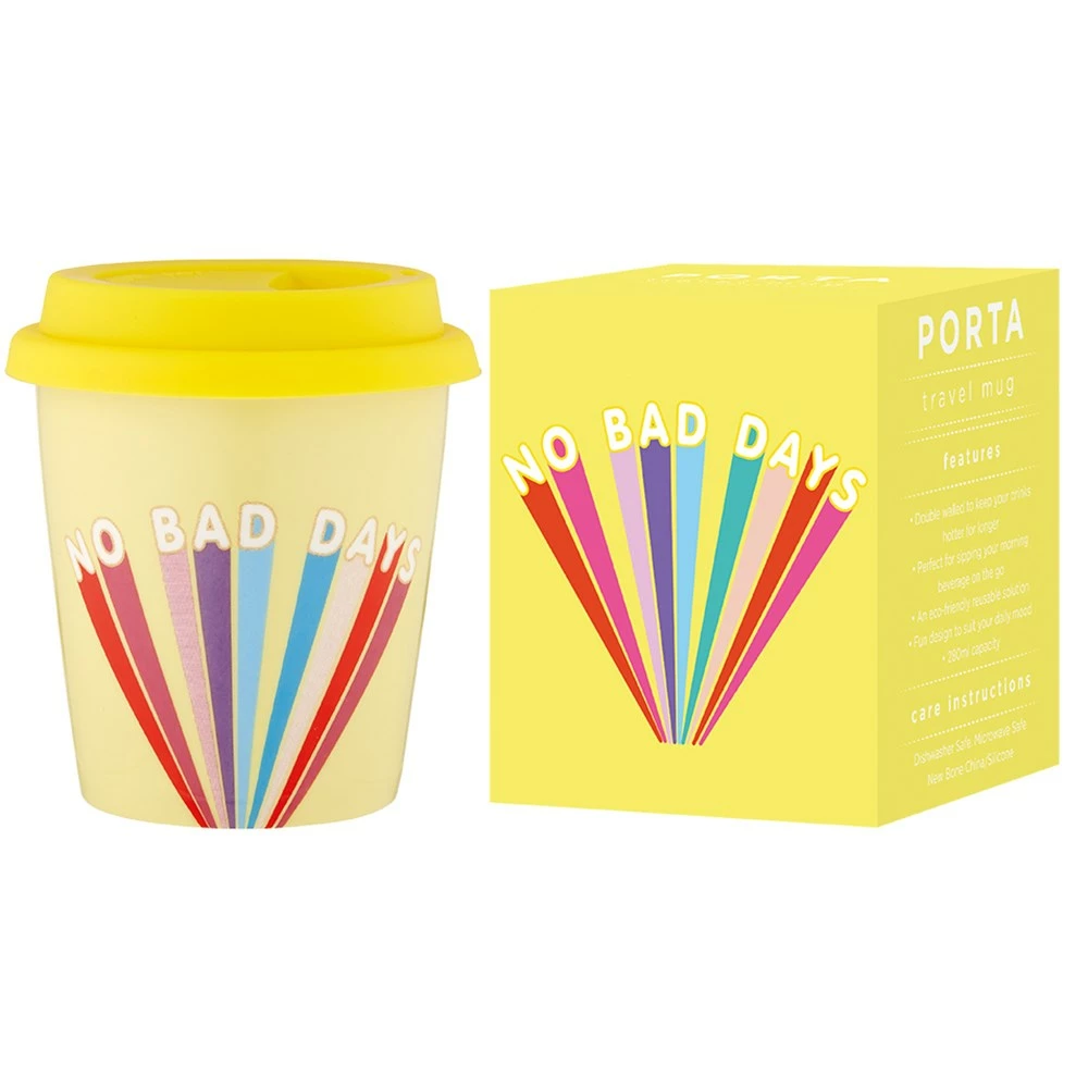 Featuring a fun and quirky slogan, you can start the day with a giggle as you sip on the Porta Drama Queen No Bad Days Travel Mug 280ml. Boasting an insulated double-wall new bone china construction and a fitted silicone sipping lid, the Porta Drama Queen No Bad Days Travel Mug 280ml can be filled with your favourite hot beverages at home, on the go or in the office. Showing off bold, bright colours, the mug boasting a generous 280ml capacity and keeps your drink hot and your hand cool so you can enjoy a warming tea, coffee or cocoa as you desire. Presented in a coordinating gift box, the Porta Drama Queen No Bad Days Travel Mug 280ml makes a perfect ready-made, amusing gift for a close friend or family member. Mix and match this witty mug with others from the Drama Queen range so you can pick and choose whatever mug suits your mood.
